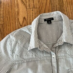 I love Ronaon button up quilted striped neutral gray ivory women medium