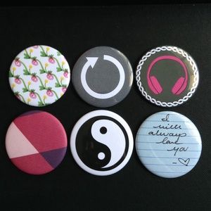 I'm offering any 7/$10 OR any custom(make your own) 5/$10 - mix n match with any buttons, magnets, or pocket mirrors. Only available in 2.25 inch, sorry. Hope to have more sizes soon! xoxo you can comment picA1-6, picB7-12, picC13-18 ..thanks, everyone.