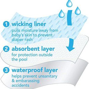 i play. by green sprouts is the original reusable Swim Diaper manufacturer and has a patented three-layer design (U.S. Pat. No. 7,678,094). The wicking liner helps prevent diaper rash, the inner absorbent layer helps protect against messes outside the pool, and the waterproof outer layer works with the snug-fitting waist and legs to provide secure protection from unsanitary and embarrassing accidents in the pool. No other diaper necessary!