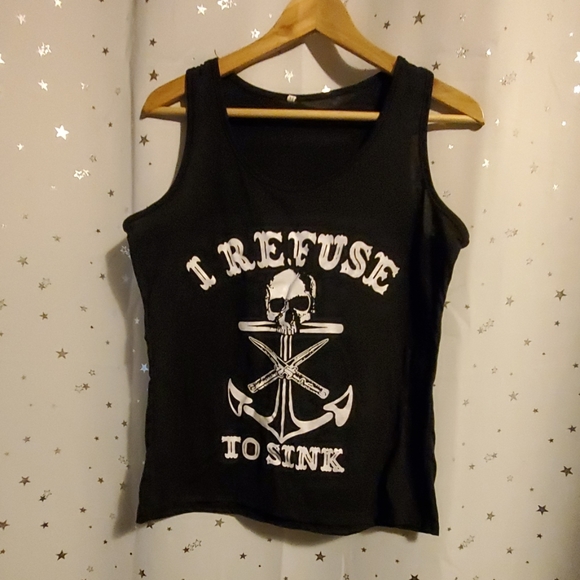Loose fit, I refuse to sink tank top! Strait to the point