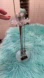 Elegant clear and silver jewelry stand perfect for organizing necklaces and bracelets. Features a sleek design with a chain holder and rotating for easy access.