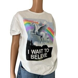 I want to believe- Unicorn Mystical Rainbow Unisex Crew Neck Shirt- Size Small