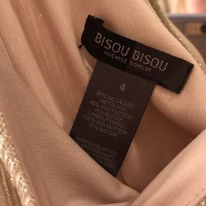 This off the shoulder dress is a size 4 bisou bisou! It is formal and only worn once! I got many compliments while wearing!