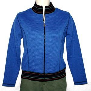 IACTIVE PETITE Textured Performance Jacket. Blue with Multicolor trim. Full zip front. Size PM