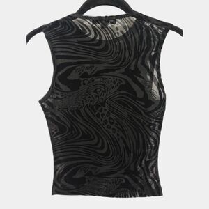 I.AM.GIA. Black Sheer Zip Zag Pattern Club Rave Tank Top Shirt Women's Size XS