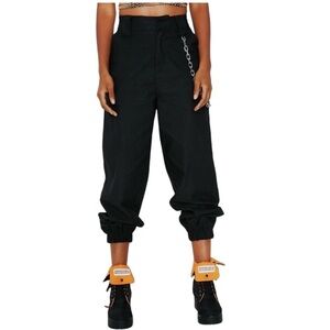 I.AM.GIA Cobain Chain Black Jogger Pants featuring pull on styling, a high waist and cuffed bands at the bottom. Baggy silhouette. Chain is missing but can attach your own.