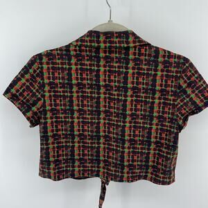 I.AM.GIA Dante short sleeve checker print tie front cropped top sz XS