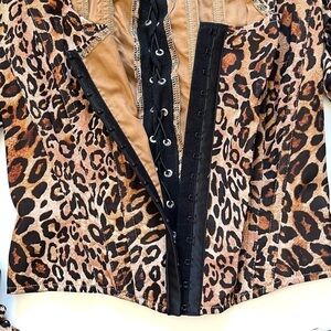 I.AM.GIA Long Sleeve Chelsea Leopard Corset Top XS Lace Up Back Ruched Sleeves