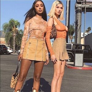 I AM GIA Maci Mini Skirt death to fuxxboys, babe. Hair flip on ‘em in this high waist mini skirt that has D- ring hardware, xposed front zip closure N’ zip hardware on the front.