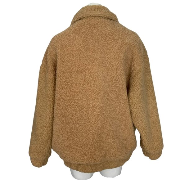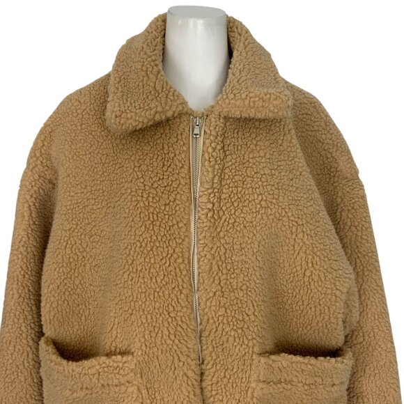 I.AM.GIA Pixie Teddy Coat Jacket S Caramel Zipper Front Pockets Sherpa Oversized
