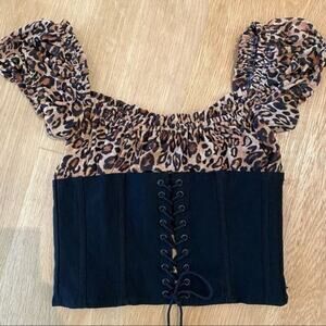 I.AM.GIA Rhia Lace Up Corset Top in Leopard and Black
