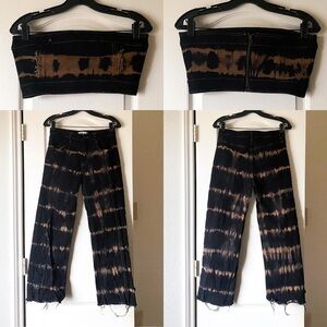 I.AM.GIA Set Arago Pant Arago Crop Top Distressed Tie-Dye Black Orange M GUC