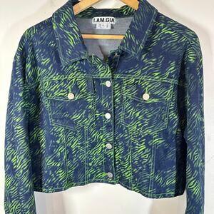 I.AM.GIA Sinead Jacket Green Tiger Print Cropped Jean Jacket Women’s Large