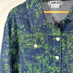 I.AM.GIA Sinead Jacket in Green Tiger Print Cropped Jean Jacket Womans Large