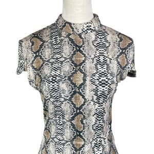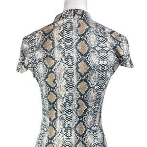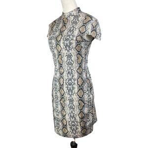 I.AM.GIA Snakeskin Form Fitting Short Cap Sleeves Band Collar Zip Up Mini Dress