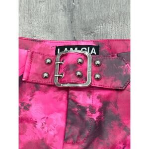 I.AM.GIA Womens Pantea Pink Buckle Faux Leather Pants Tie Dye Flare Leg Size S