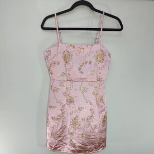 I.AM.GIA Womens Rose Kiko  Mini Dress Pink Floral Satin Spaghetti Straps XS