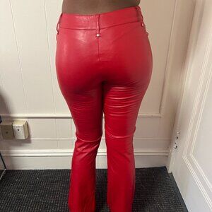 Red lace-up faux leather pants