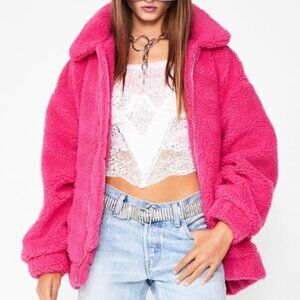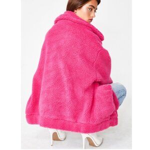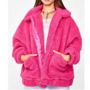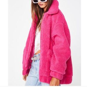 Stay warm in this oversized teddy jacket that has pockets on the sides and a zip closure.