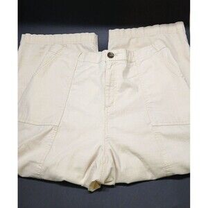 IB Diffusion Capris Cropped Pants Size 12 Cream Patch Pockets Cotton Blend