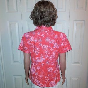 IB Diffusion Coral/White Floral Short Sleeve Button Up Blouse Size S NWOT