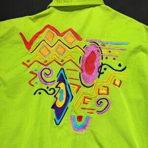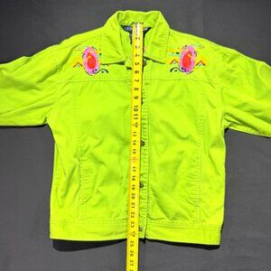 IB Diffusion VINTAGE Women's Denim Jacket Size 10 Bright Green Embroidered