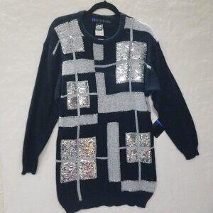 IB Diffusion Womens M Black Silvers Silk Sweater Sequins Beaded Front NWT Vntg