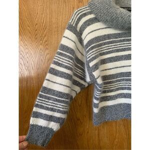 I.B. Diffusion Vintage Angora Blend Striped Cowl Neck Sweater Gray, White Size