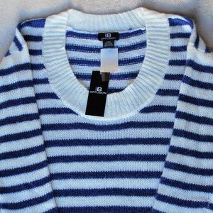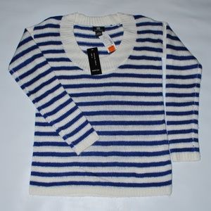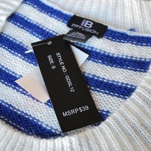 IB Difussion Women's White & Blue Striped 100% Acrylic Sweater Size S