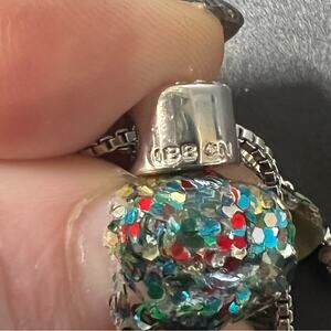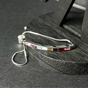 IBB CN Silver Tone Box Chain Rainbow Crystal Bar Bracelet Sterling Silver