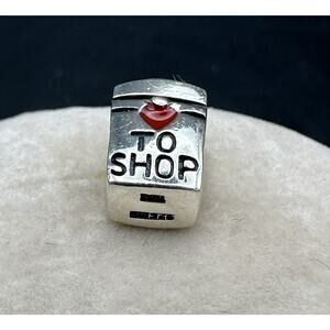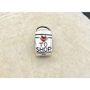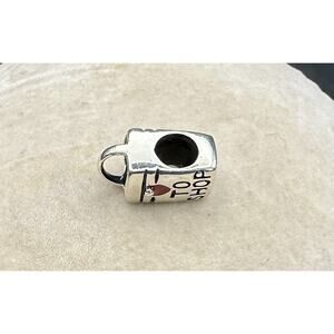 IBB Signed Sterling Silver I Love to Shop Bag Charm Bead Red Heart