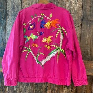 I.B. Diffusion Sz 8 Fuschia Pink Heavy Embroidered Koi Fish Vintage Jacket