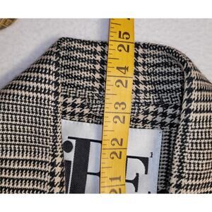 IBE Womens Blazer Jacket 10 Vintage 90s Silk Wool Houndstooth Black Tan Y2K