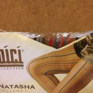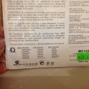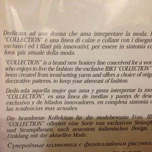 New in package Ibici collection pantyhose from Italy...size 3...look to be a striped blue red on a sheer background pattern.....looks to be from 1994...Collection is a brand new hosiery line for the woman who enjoys to live the fashion...created from trendsetting yarns and decorative patterns....size 3...see picture of chart for size information..no returns...this is brand new hosiery