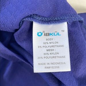 IBKÜL top in a navy shade. This Long Sleeve Zip Mock Neck features patented IceFil technology fabric. It works by converting sweat to refrigerant; cooling your skin 3 to 5 degrees, allowing you to be cool, comfortable and dry on the hottest humid days. This garment also has built-in UPF 50 sun protection, moisture-wicking, and anti-microbial properties. This style has a mesh underarm panel promoting additional comfort and breathability. Wear the Long Sleeve 1/4 Zip Mock Neck to all athleisure activities! Small turtle embroidered on sleeve.
