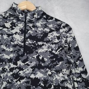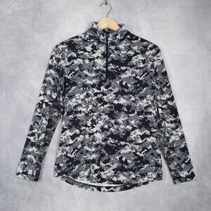 IBKUL 1/4 Zip Top Womens XS Gray Black Camo Long Sleeve Nylon Mesh Vented