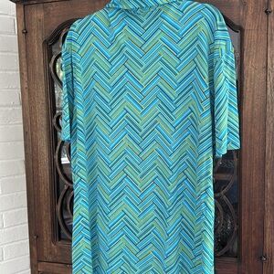 IBKUL Blue and Green Polo Shirt with Chevron Design