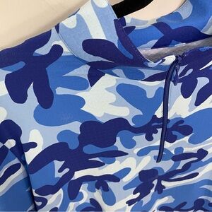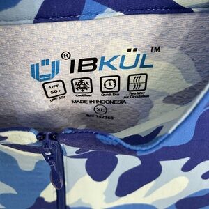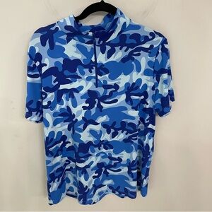 IBKUL Camo Navy Royal Blue Short Sleeve Mock Golf Shirt Size XL Athleisure