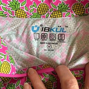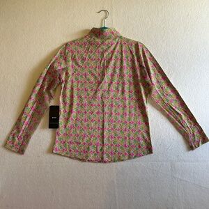 IBKUL Chantal Print Long Sleeve Mock Neck Golf Top w/ Pineapples Size M