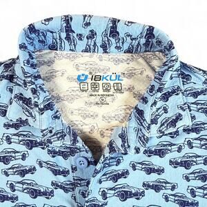 IBKUL Crusin Short Sleeve Polo Shirt Muscle Cars UPF50+ Cooling Golf Blue Mens M