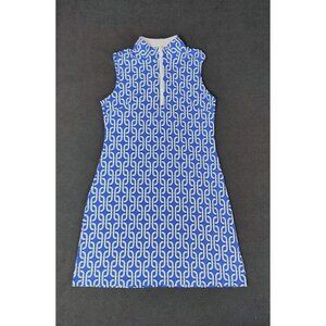 IBKUL Dress Geo Chain Print Sz (S) Blue White Golf Tennis Pickleball Preppy