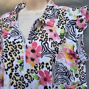 IBKUL Eva Hot Pink Ruffle Sleeveless Tennis Golf Athletic Shirt Top Women's XXL