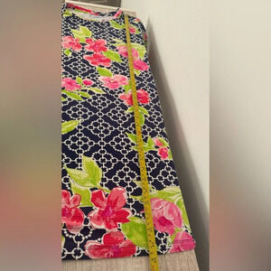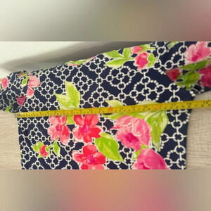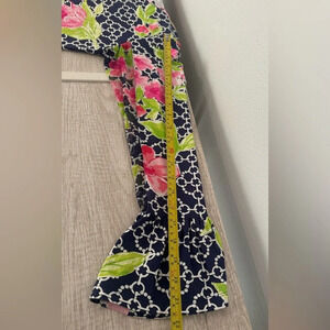 This is a listing for a preowned IBKUL Floral Chain Link Print Long Sheer Mesh Bell Sleeve Dress Size Medium. Light pilling under arms, shown in photos. No holes or stains that I see, mesh on underside of arms, approximate measurements in photos. Please see all photos for details as they are part of the description.