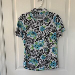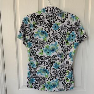 IBKUL Floral and Animal Print Short Sleeve Shirt - S