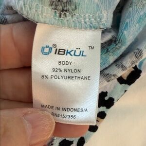 Stylish short sleeve top by IBKUL. Features a vibrant floral and animal print design in shades of blue, green, and black on a white background. This top is aimed to address the shortcomings of run-of-the-mill athleisure and sun-protective clothing, introducing an innovative textile that actively combats UVA/UVB rays while keeping you ventilated, moisture-free, and comfortable.