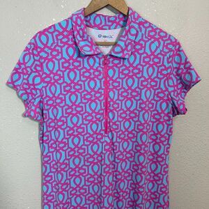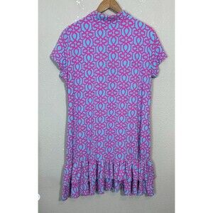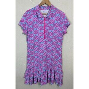 IBKUL Godet Golf Dress XL Leslie Print Pink Blue Bright Colorful UPF Pickleball