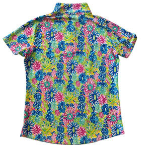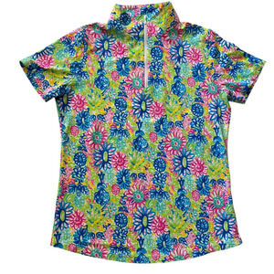 IBKUL Golf Shirt Womens Size Medium Floral Short Sleeve 1/4 Zip Quick Dry UPF 50