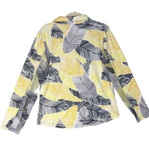 IBKUL Golf Tennis Shirt Top L Vented Mesh Long Sleeve Collar Yellow Black Palms