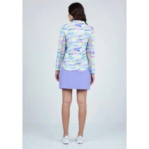 IBKUL Jessie Print LS Polo Plum Multi Womens XS UPF 50 Golf Pickleball Outdoors
