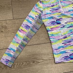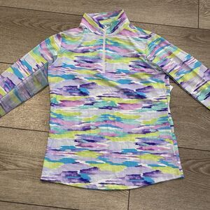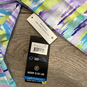 IBKUL Jessie Print LS Polo Plum Multi Women’s XS UPF 50 Golf Pickleball Outdoors